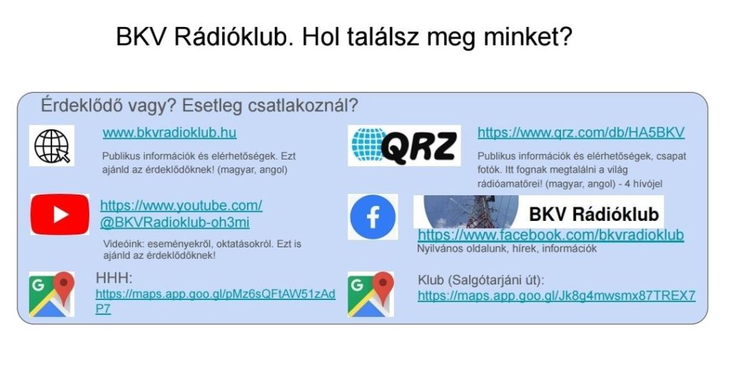 A BKV Rádióklub oldalai, megjelenési felületei: